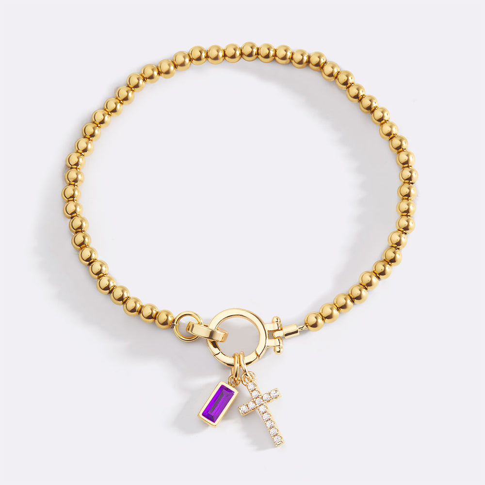 Grace meets meaning. This birthstone cross charm bracelet blends faith and personal touch in a sleek, modern design. A heartfelt piece to wear alone or layered effortlessly.