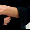 A golden shimmer that feels soft as petals—this petal chain bracelet adds a graceful finish to your look, whether you wear it solo or stacked. Its sleek links catch the light just enough to make everyday sparkle feel effortless.