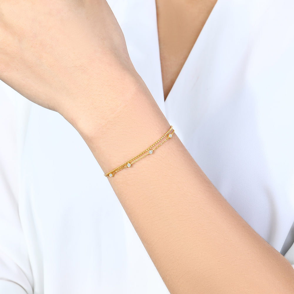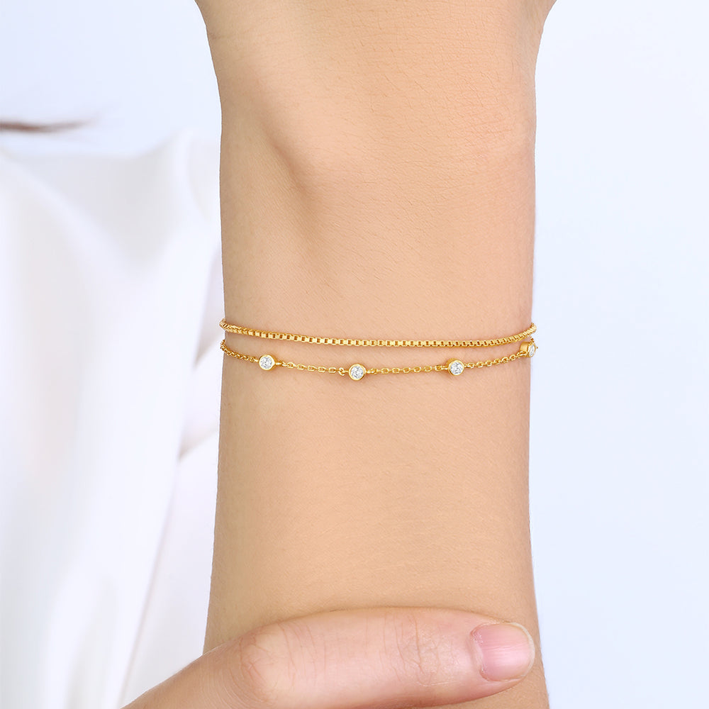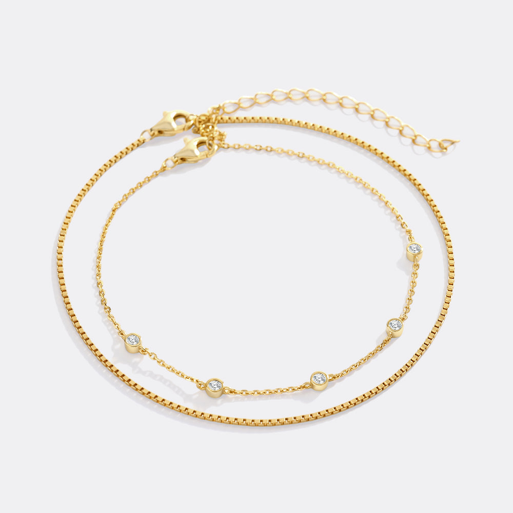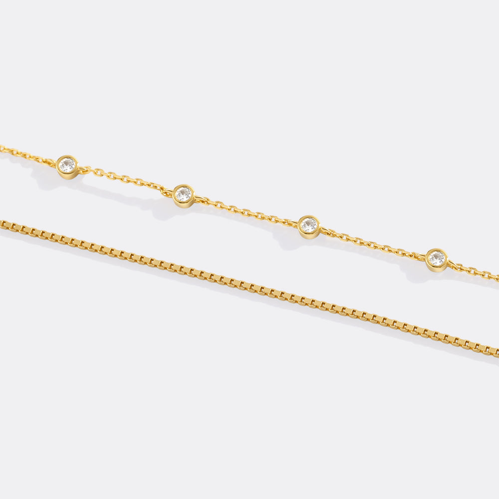 Bezel Set Diamond Bracelet and Box Chain Bracelet Stacking Set