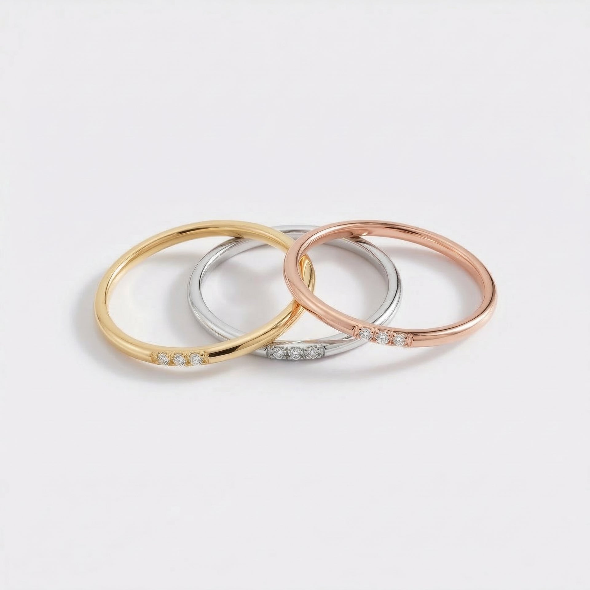 This delicate piece features small, sparkling simulated diamonds set in a fine band, perfect for stacking or wearing alone for a touch of understated luxury.