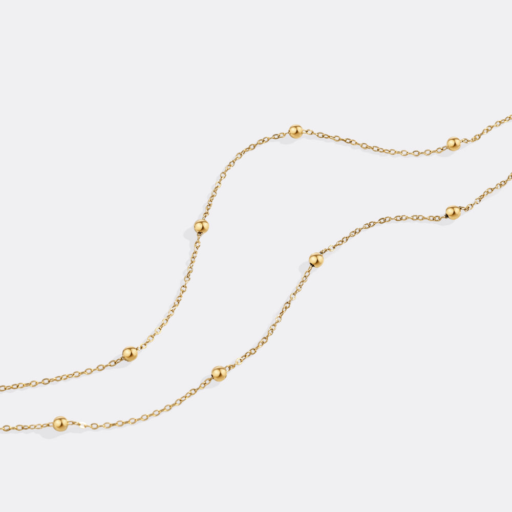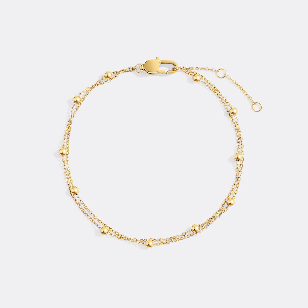 Elevate your wrist game with the Double Chain Bracelet: a sleek, layered design featuring two delicate chains intertwined to create a chic, modern statement. With bobble detailing and a versatile length, it’s perfect for stacking or wearing solo.