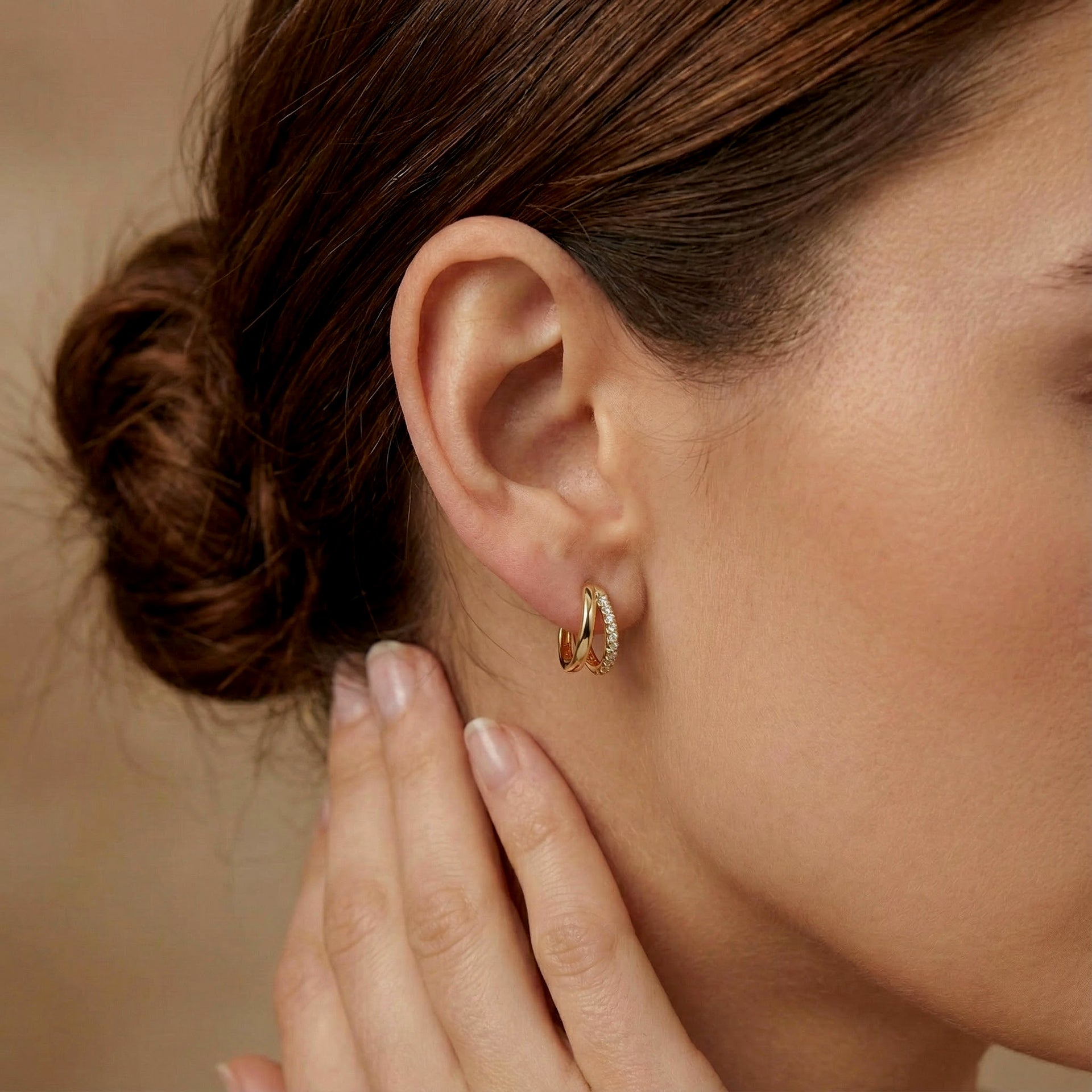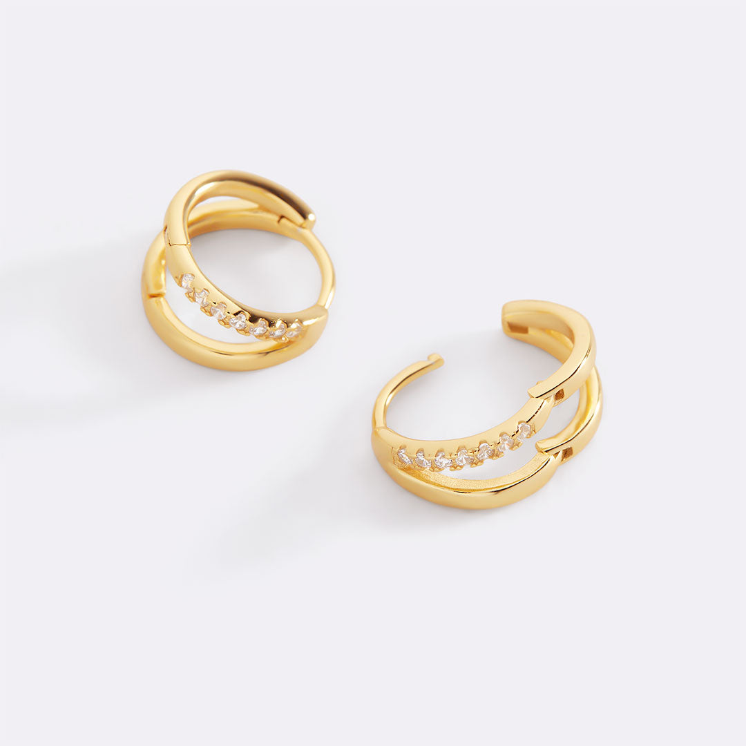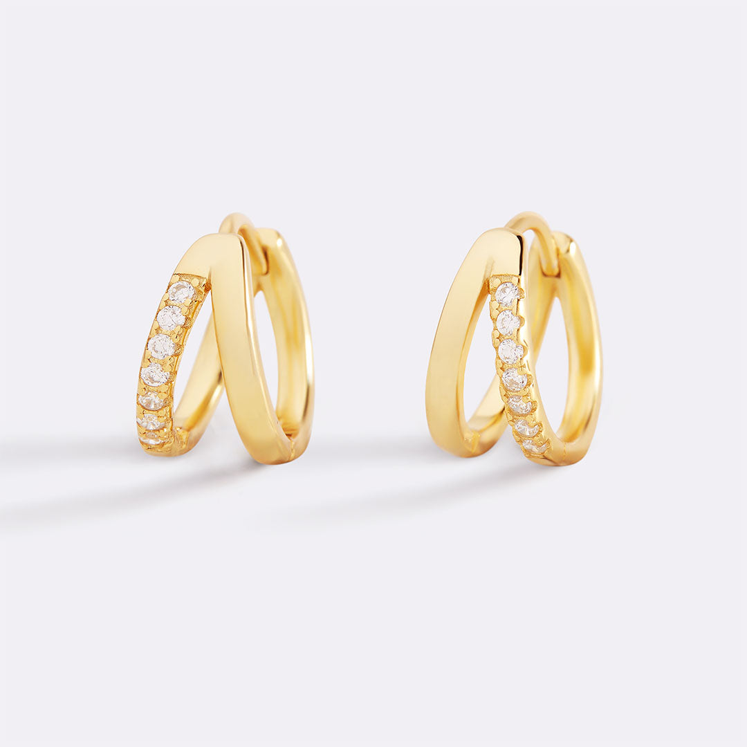 These double hoop huggie earrings give the illusion of a stacked look in one easy piece. Lightweight, comfy, and perfectly polished — just the right mix of bold and minimal for every day.
