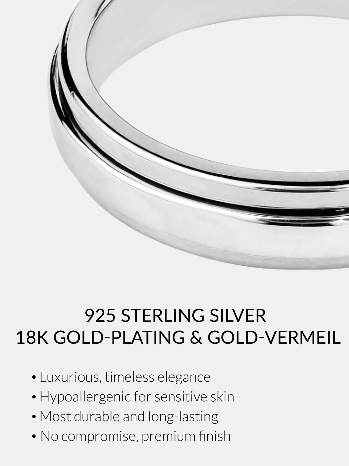 Gentle and Hypoallergenic: Sterling Silver is a considerate choice for sensitive skin, ensuring comfort and confidence with its hypoallergenic properties. The gold-plated and gold vermeil options maintain these skin-friendly qualities, offering luxury without compromise.