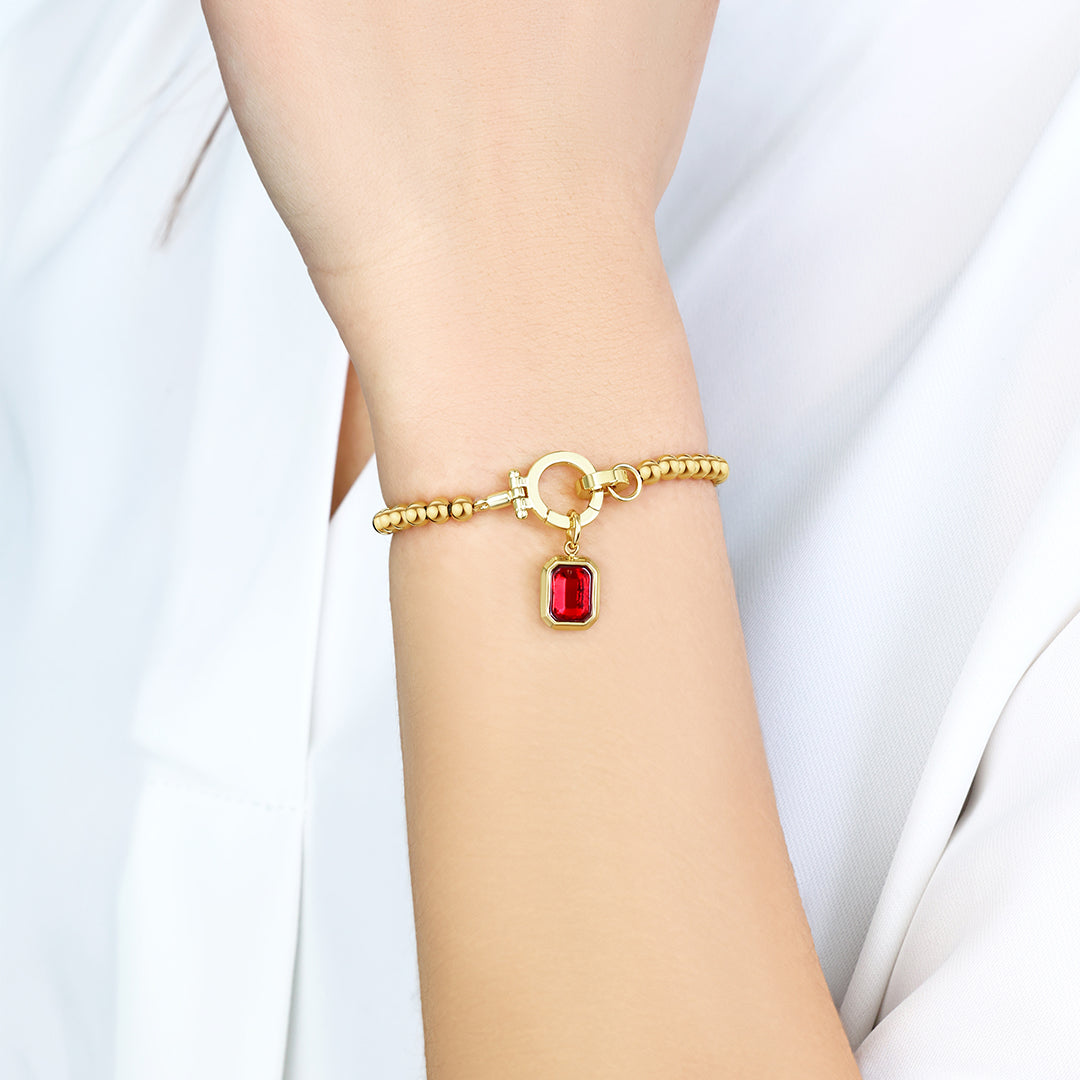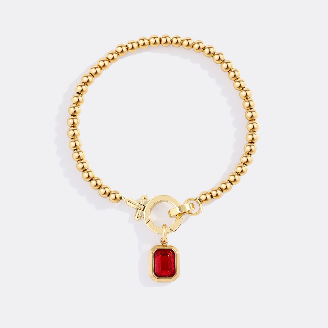 Elevate your everyday style with our Baguette Birthstone Charm on Beaded Bracelet. This elegant piece features polished beaded detailing paired with a striking baguette-cut birthstone charm that adds a meaningful pop of color and sparkle.