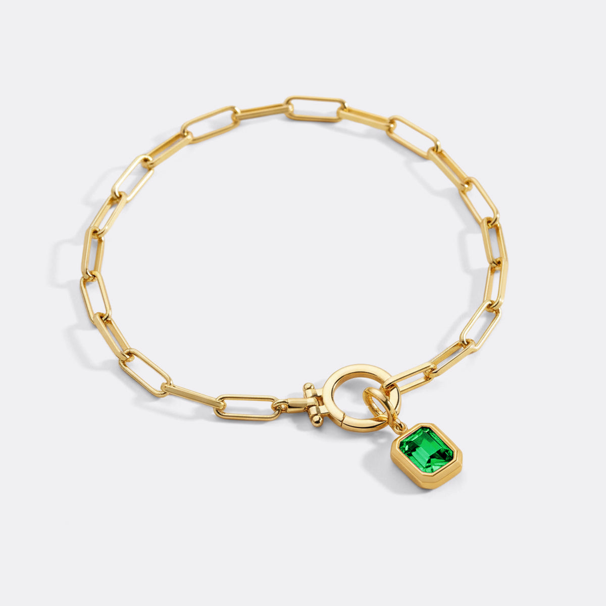 Baguette Birthstone Charm on Mint Paperclip Bracelet