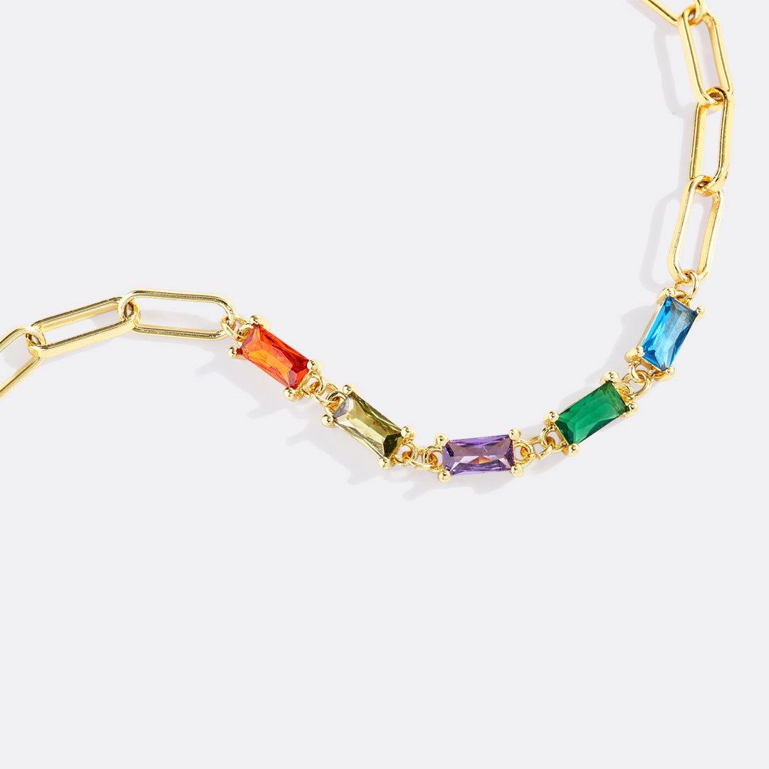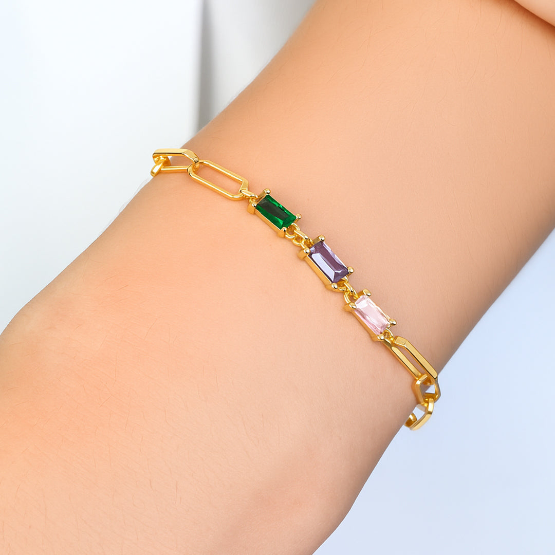Baguette Birthstone Paperclip Bracelet