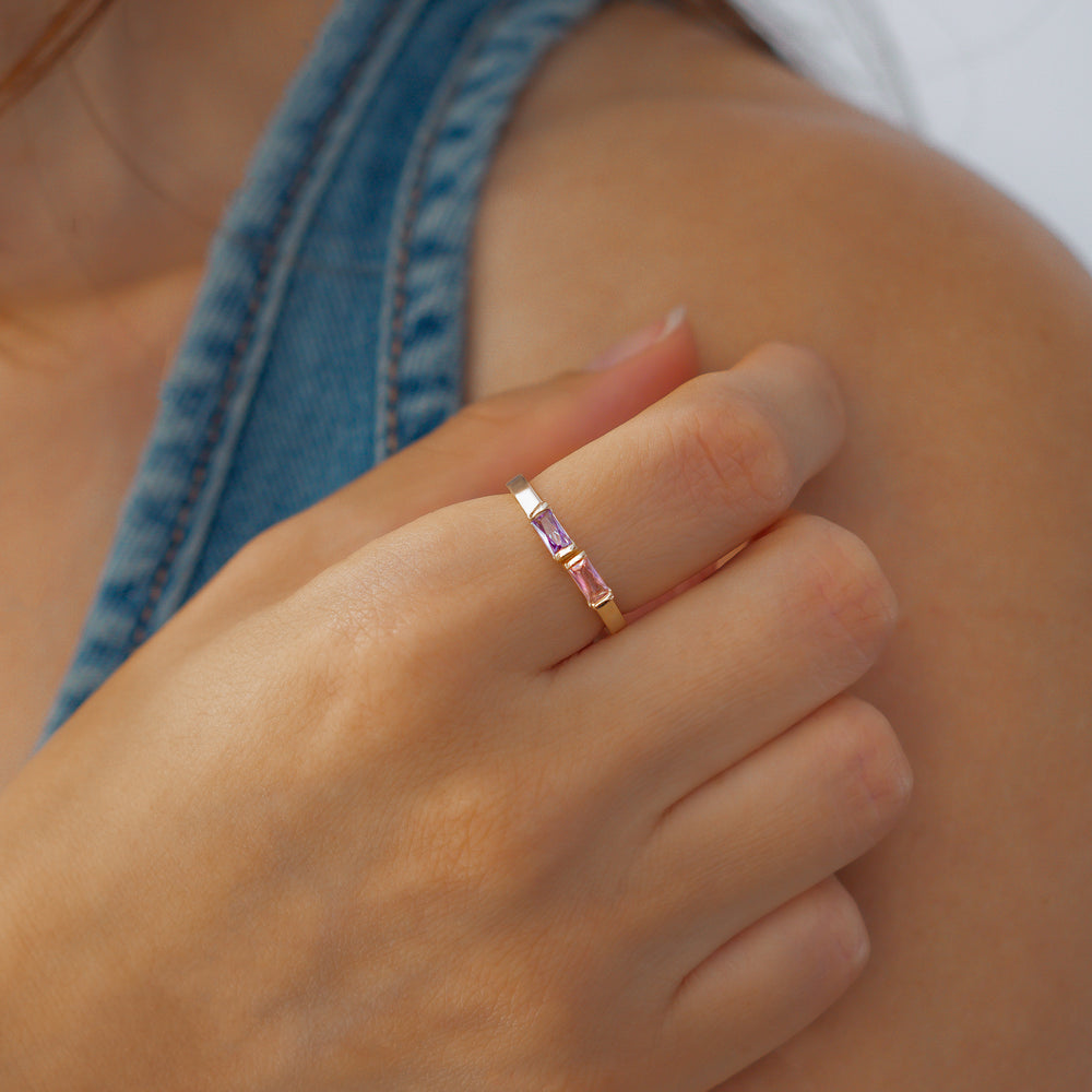 This delicately designed adjustable ring allows you to choose and showcase two meaningful baguette-cut birthstones. Crafted with precision and care, this ring is made from 925 Sterling Silver and features high-quality AAA Grade Cubic Zirconia stones, adding a touch of elegance and personalization to your style.