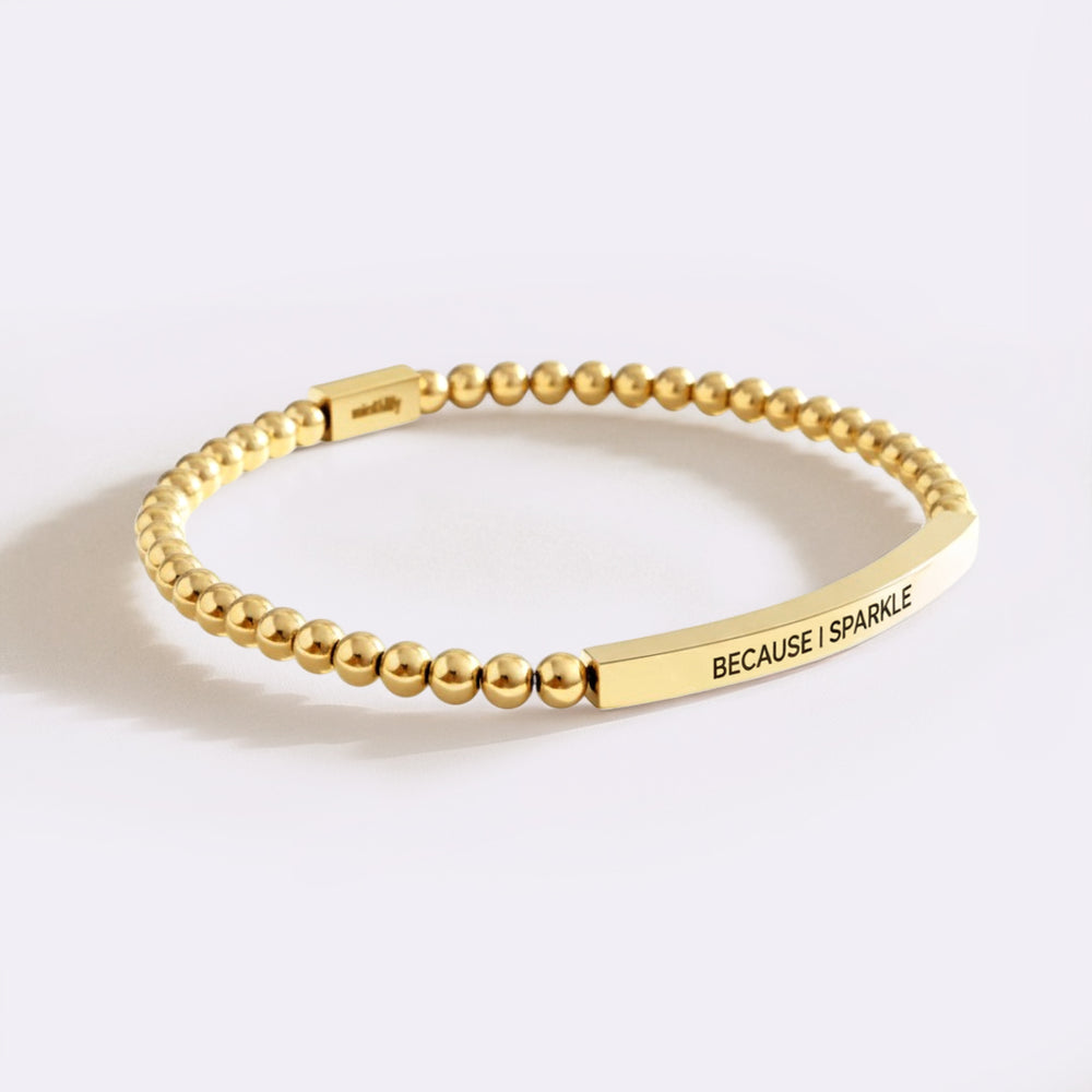 Shine on—because you were made to sparkle. The Because I Sparkle Beaded Inspire Bracelet is a playful reminder to own your light and let it show. With its effortless slip-on style and joyful message, it’s the perfect accessory for anyone who walks through life with confidence, glitter, and a little bit of sass.