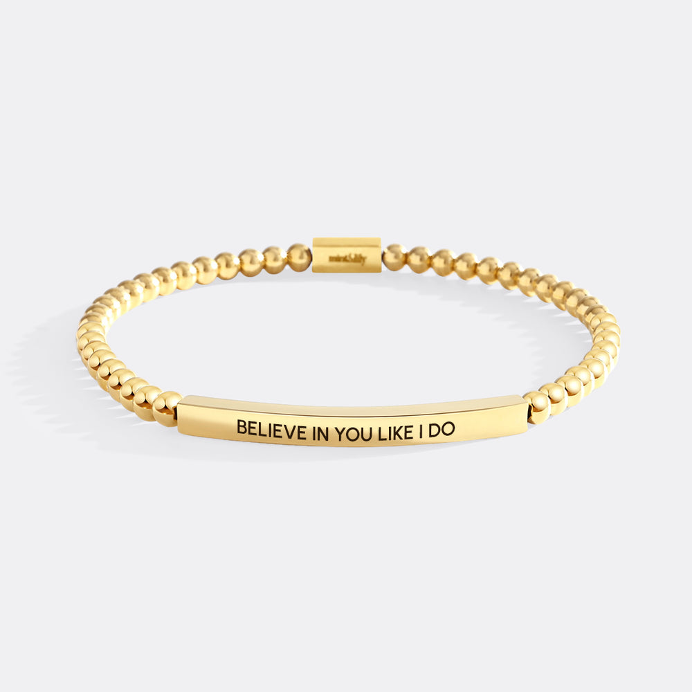 A meaningful reminder of unwavering support, this beaded bracelet features the touching message: "Believe in You Like I Do." Perfect for someone you love, it's a beautiful way to show encouragement, belief, and unconditional faith in their journey.