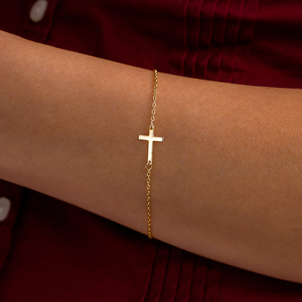 Embrace simplicity with this dainty gold bracelet. The subtle cross charm adds a meaningful touch without overpowering your style.