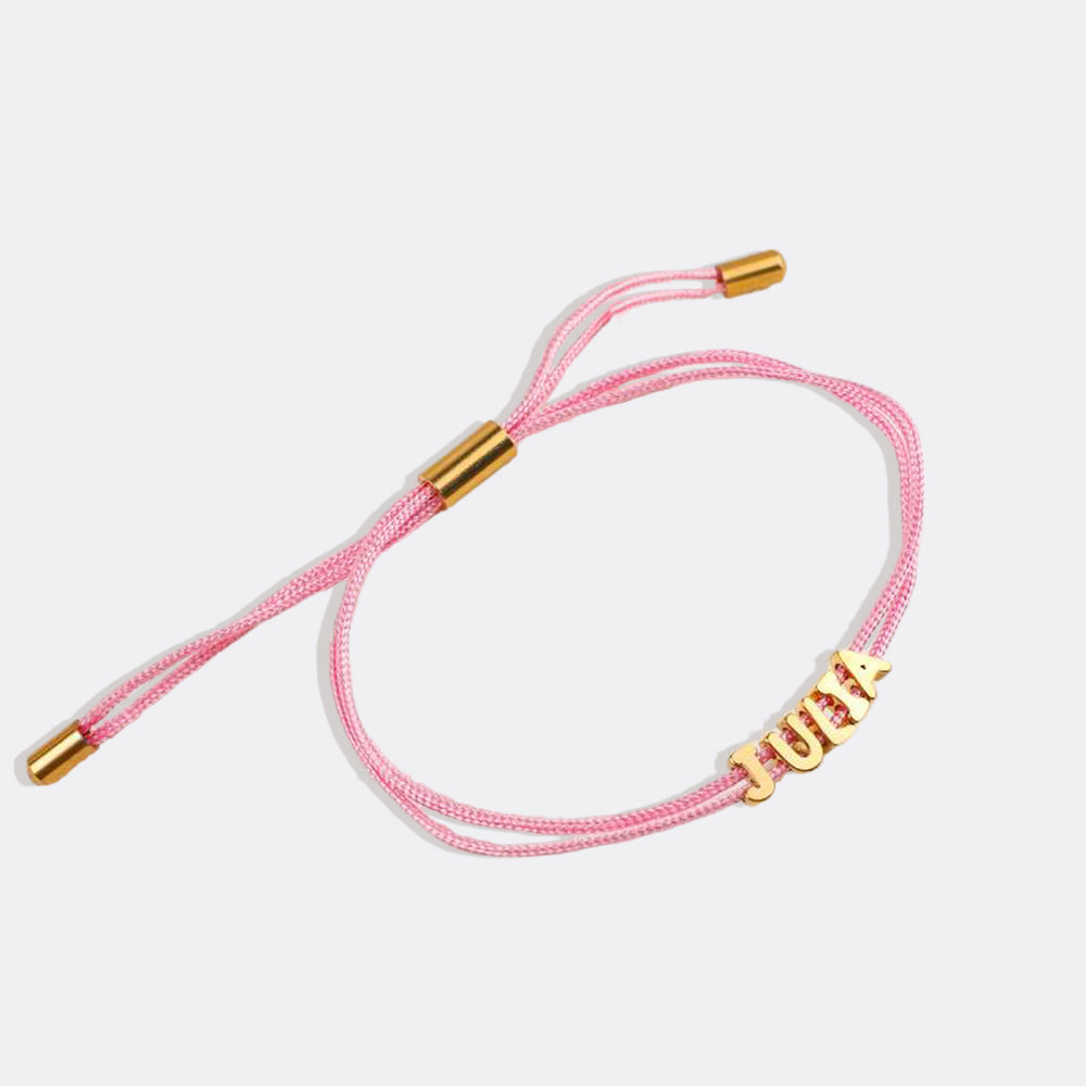 This whimsical bracelet features your name or a meaningful word beautifully crafted and attached to an adjustable band, ensuring a perfect fit for any wrist size. Ideal for daily wear or as a personalized gift, this piece adds a unique and personal touch to your jewelry collection, allowing you to keep something special close at hand.