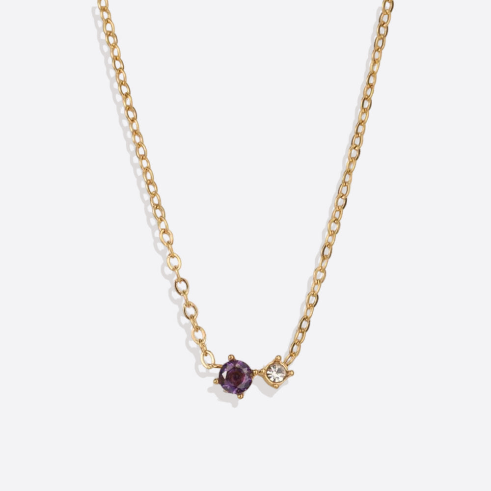 Add a personal touch of sparkle with Mint & Lily's Dainty Birthstone Solitaire Necklace, featuring a stunning solitaire birthstone complemented by a delicate diamond accent. This elegant piece beautifully highlights your birth month with a hint of luxury, making it perfect for daily wear or as a thoughtful, personalized gift.