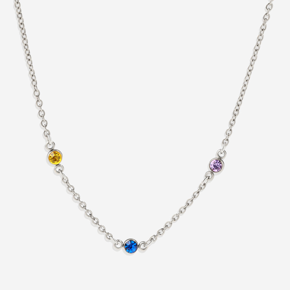 Mint & Lily's Dainty Birthstone Station Necklace is a delicate and elegant piece that highlights the beauty of personalized jewelry. This necklace features a series of small, sparkling birthstones spaced evenly along a fine chain, creating a subtle yet eye-catching design. Each birthstone can represent a loved one's birth month or a special milestone, adding a meaningful touch to the necklace.