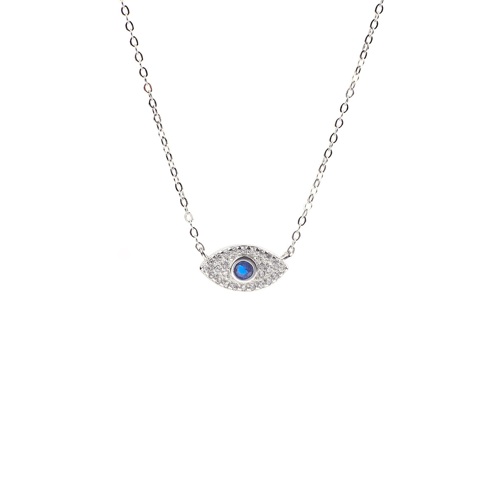 This stylish choker features the iconic evil eye motif, believed to protect the wearer from negative energies and bring good luck. The eye is exquisitely detailed with pave stones that glitter and catch the light, adding a touch of sparkle to your neckline. Set on a sleek, adjustable chain, this choker is both a protective talisman and a trendy accessory, perfect for layering or wearing alone as a statement piece.