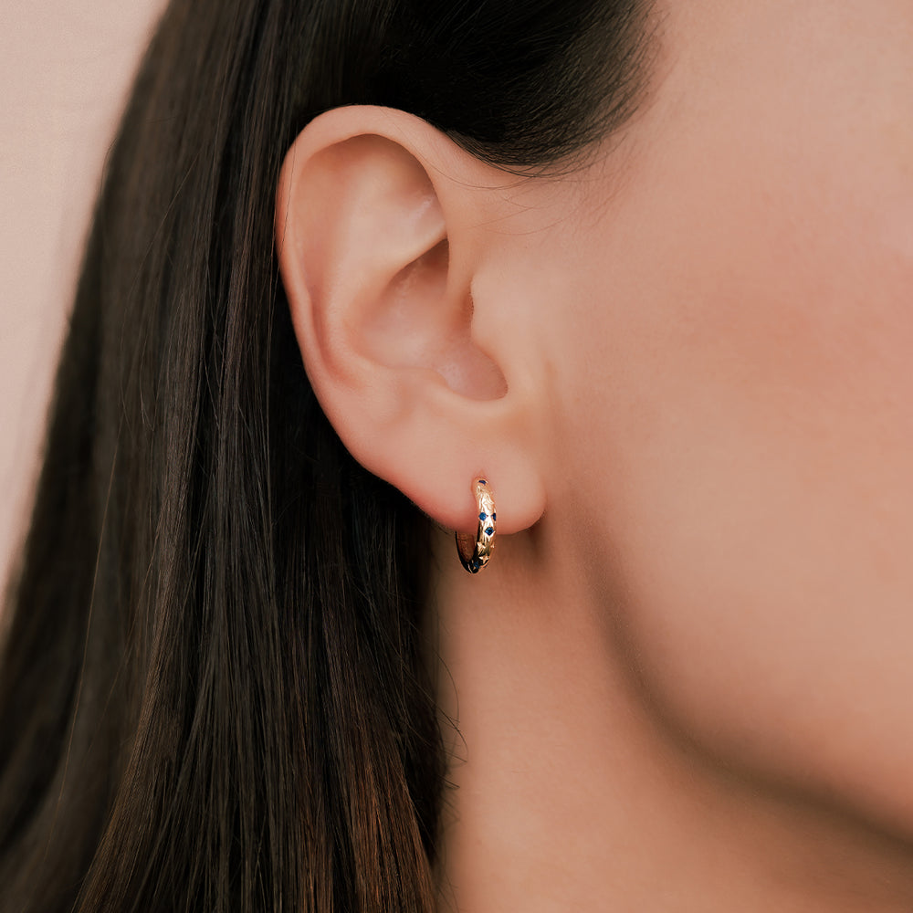 These enchanting earrings feature small huggie hoops from which multiple tiny stars appear to cascade, resembling a miniature meteor shower. Each star is finely crafted, adding a delicate sparkle that mimics the night sky.