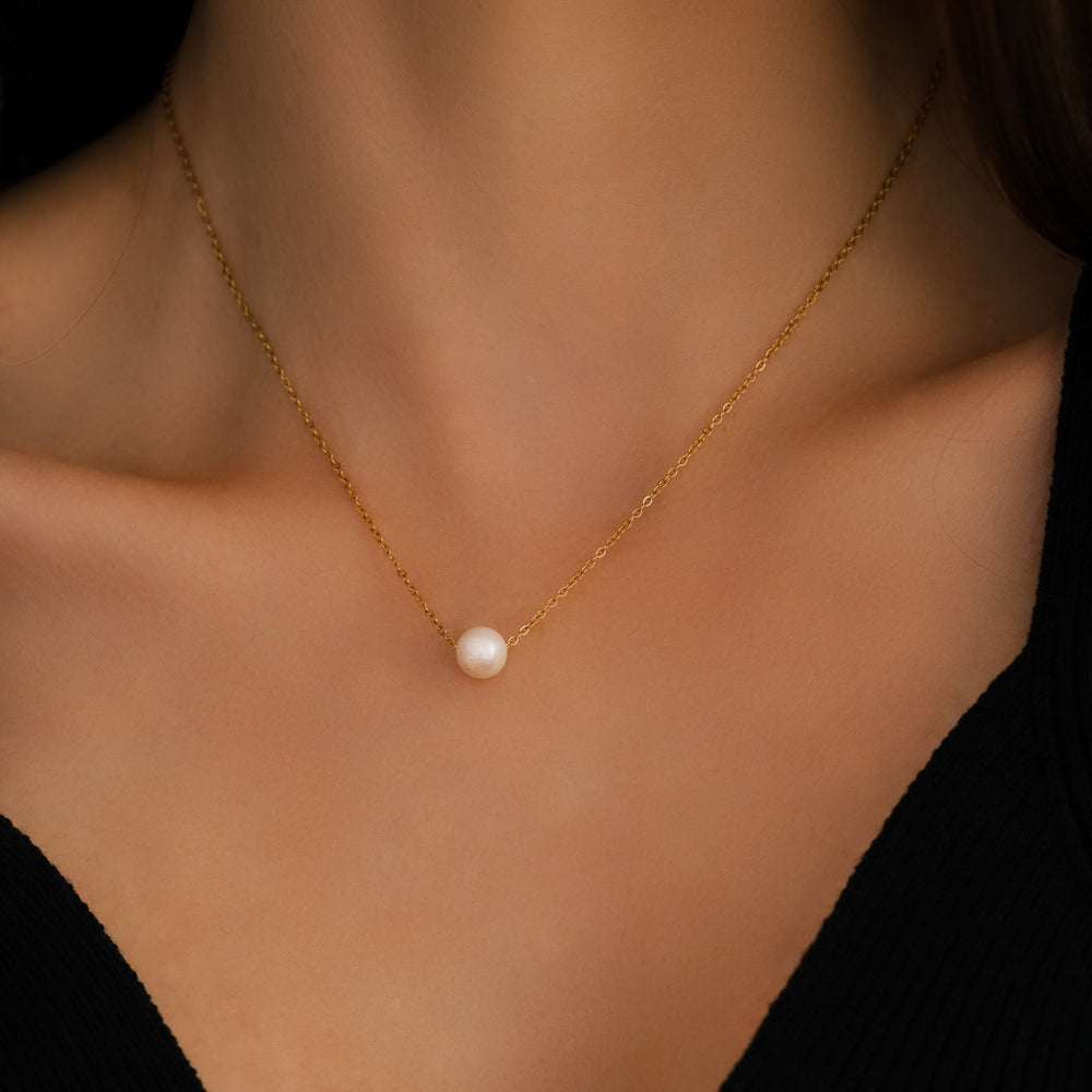 Delicate, timeless, and effortlessly elegant — the Floating Pearl Necklace is a modern take on a classic. Featuring a single luminous freshwater pearl that appears to float along a fine chain, this piece adds a touch of understated sophistication to any look.