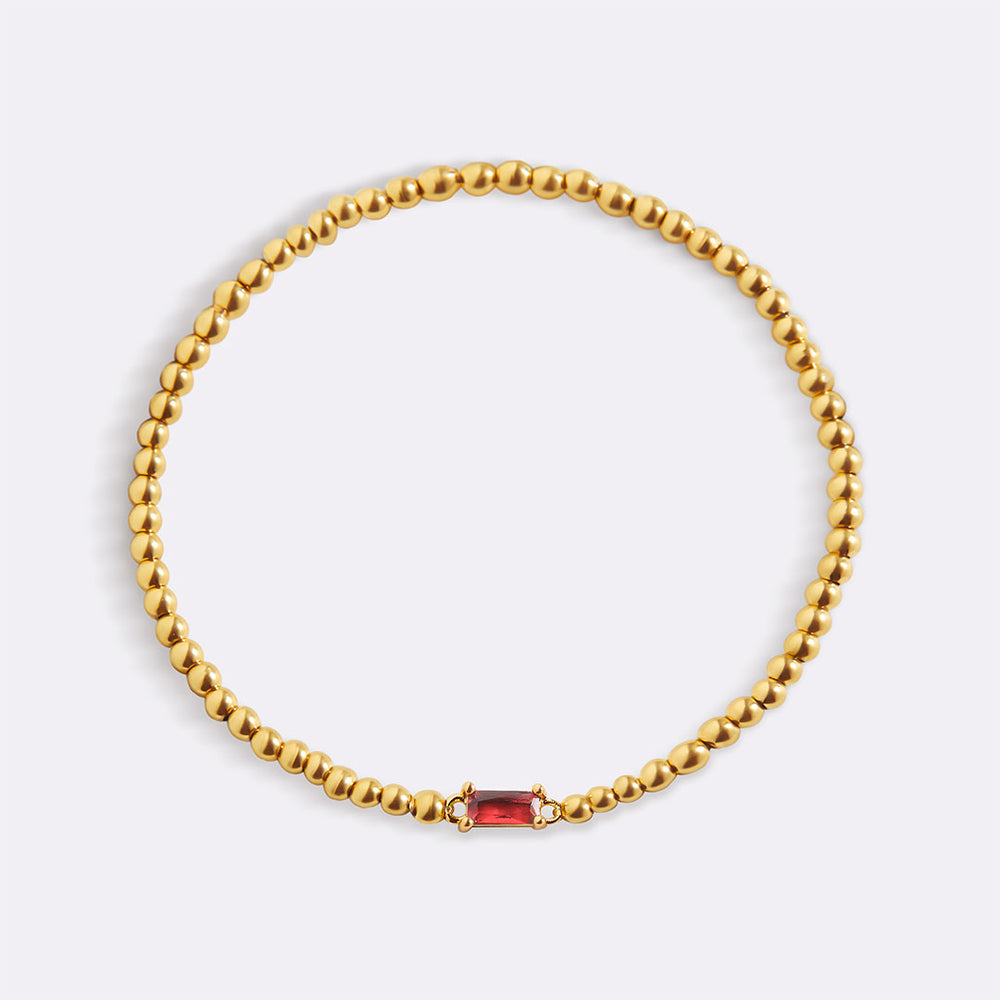 This chic bracelet features gold beads beautifully strung together, complemented by a sparkling birthstone representing your birth month. Ideal for stacking or wearing solo, this bracelet makes a thoughtful gift or a stylish way to celebrate your own special day.