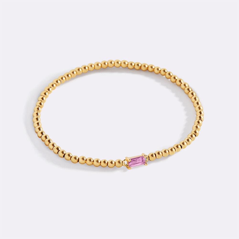 Celebrate your story with this Gold Beaded Birthstone Bracelet. Elegant yet personal, its dainty beads and vibrant birthstone charm add a touch of meaning to every outfit.