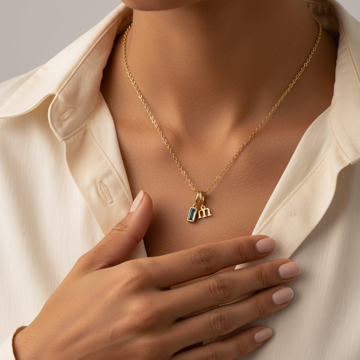This minimalist initial necklace fits seamlessly into your everyday style. A tiny letter charm and a subtly colored birthstone in stainless steel work together for gentle, meaningful elegance—ideal for layering or wearing solo.