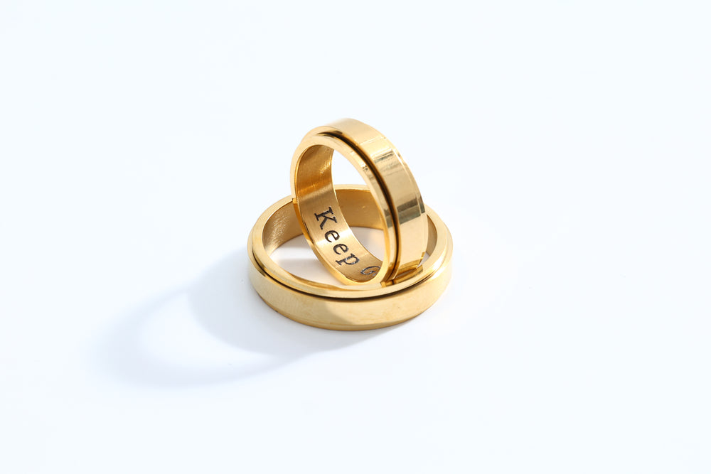 Personalized spinner ring, available in Gold, Silver & Stainless steel Black. Gender neutral style makes it great for men, women, and couples.