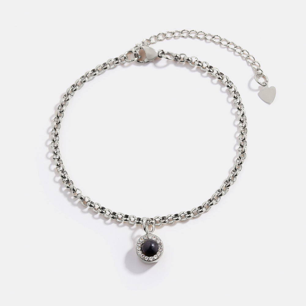 Keep precious memories close with Mint & Lily’s Petite Halo Photo Bracelet. This unique bracelet features a projectable photo stone encircled by a delicate halo of stones, allowing you to carry and share a cherished image in a beautifully subtle way. Perfect for a personal touch or a thoughtful gift.