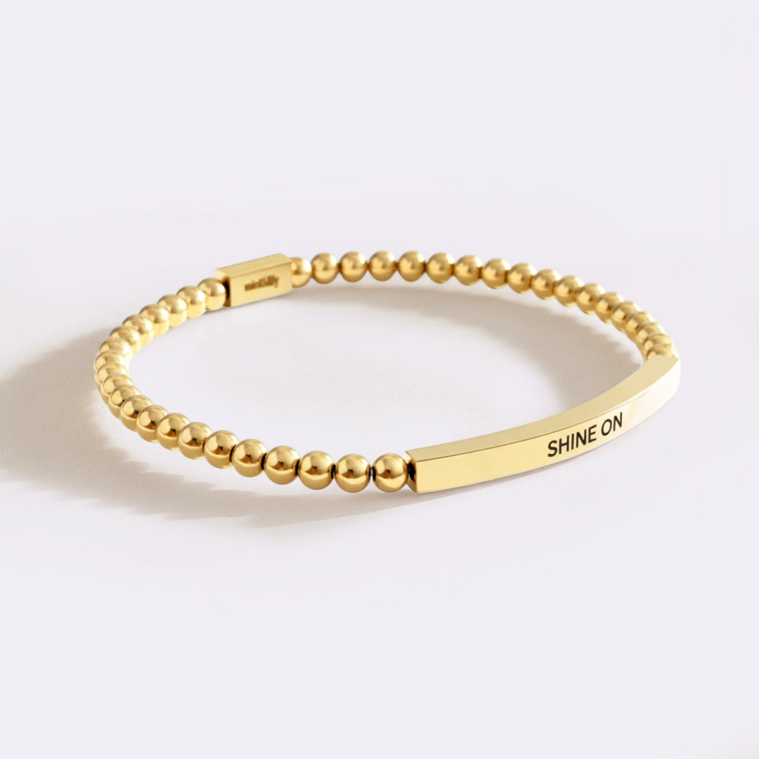 Keep your light glowing, no matter what. The Shine On Beaded Inspire Bracelet features luminous silver beads and an inspiring charm that reminds you to rise, sparkle, and stay positive through every moment. Elegant and versatile, it’s the perfect everyday piece or a meaningful gift to uplift someone’s spirit.