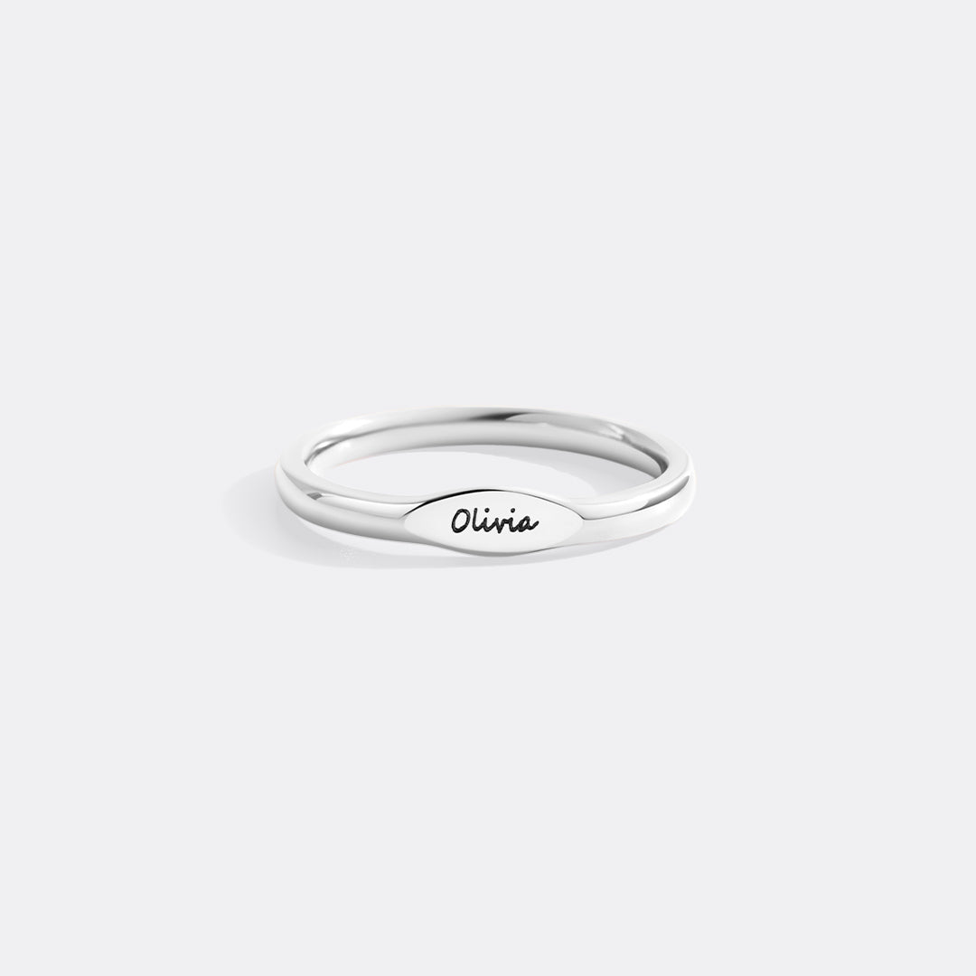 Discover refined minimalism with the Skinny Name Ring. Designed with a sleek, delicate band and subtle custom detail, this lightweight piece is perfect for stacking or wearing on its own. A timeless accessory made just for you.