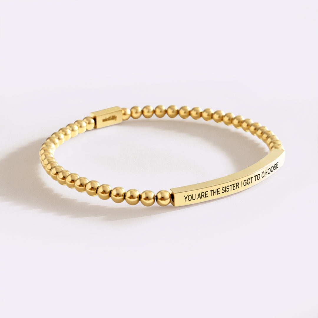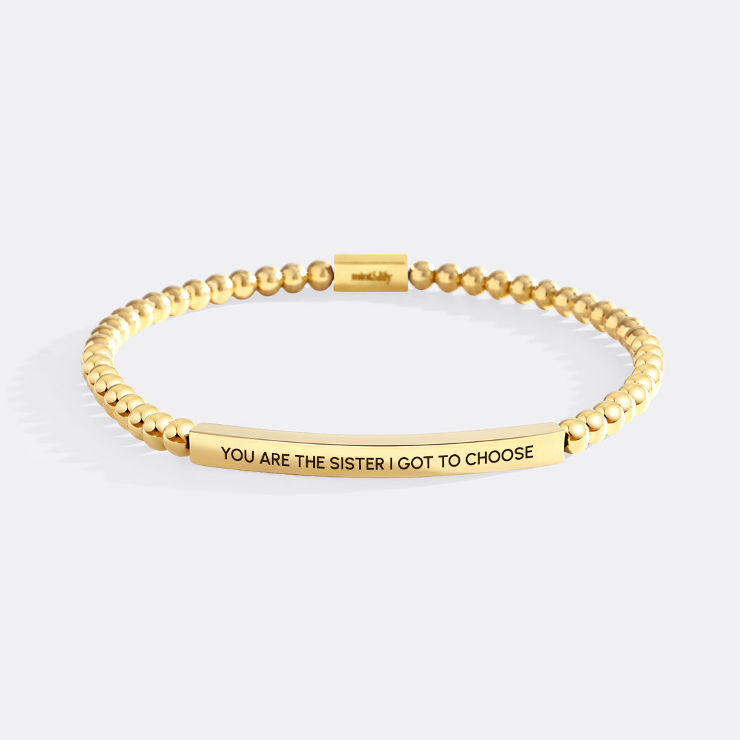 Celebrate the bond that goes beyond blood with this meaningful beaded bracelet. Featuring the heartfelt message “You are the sister I got to choose,” it’s a beautiful reminder of chosen family and lasting friendship. Delicately crafted and easy to slip on, it's the perfect gift for your soul sister—or a keepsake to remind you of the love you found along the way.
